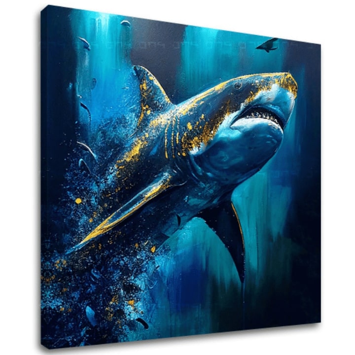 Introduction » Moderne slike » Dekorativna slika na platnu - PREMIUM ART - Shark Force in Dark Water | 80x70 cm