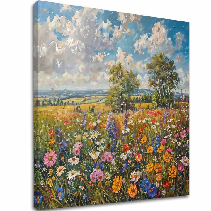 Introduction » Noviteti » Slika polja cvijeća na platnu Ljetna livada | Akrilni detalji | 60x60 cm