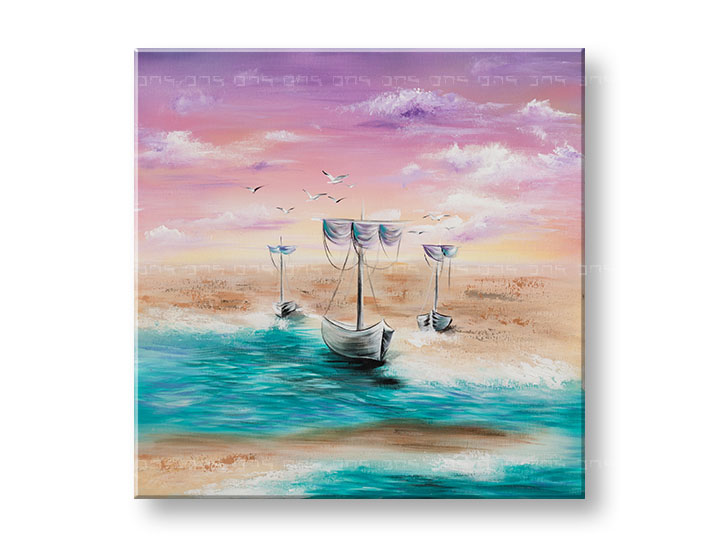 Introduction » Ručno slikane slike » Slike za INSPIRACIJU » Slikana slika na platnu LAĐE NA MORU 1-dijelna YOBATLN007E1 - 70x70 cm