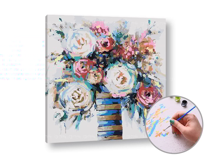 Slikanje brojevima - CVIJEĆE U VAZI - srednje teškoće | 50x50 cm