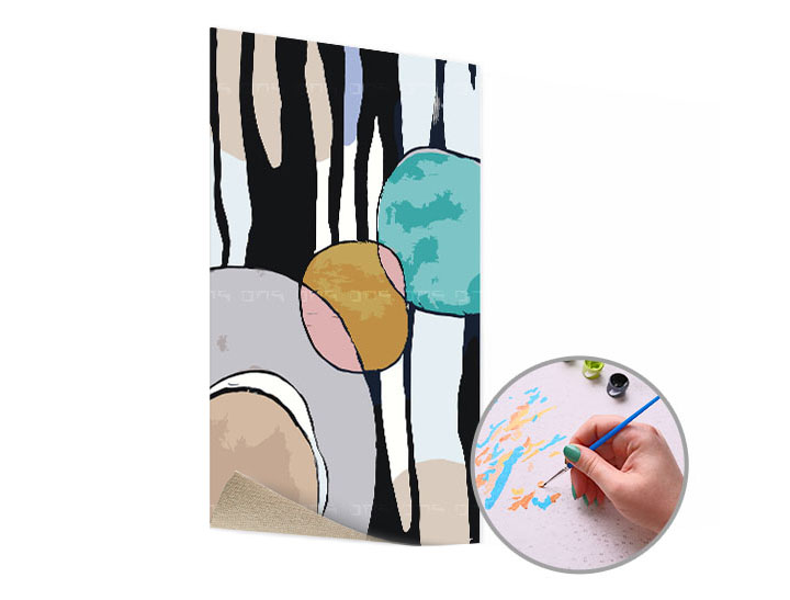 Platno je prekriveno s više slojeva akrilne sepse i napeto na debeli okvir od smrekovih letvica. Ne morate brinuti koje nijanse odabrati. Komplet također uključuje visokokvalitetne akrilne boje u čašicama (3 ml) pomiješane baš za vašu novu sliku. Uz platno i boje dobivate i predložak s objašnjenjem slikanja po brojevima. Akrilne boje više nije potrebno razrjeđivati vodom jer bi inače izgubile svoju neprozirnost.