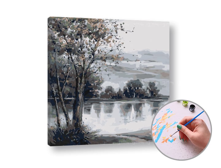 Slikanje po brojevima NA JEZERU - Level Profi | 50x50 cm - stretched canvas on the frame
