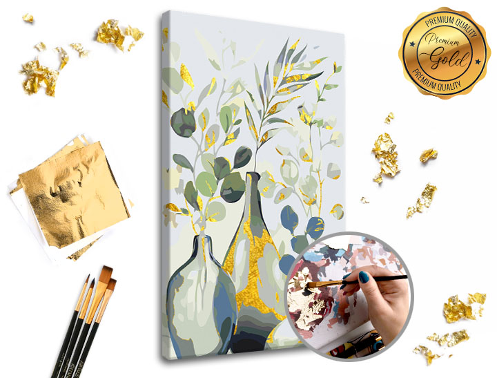 Predstavljamo vam glavni novitet Slikanje po brojevima Premium Gold. Na platnu ćete koristiti i metalne listiće čime će vaše djelo dobiti na ekskluzivnosti i trendi izgledu. Korištenje ljepila i listića je vrlo jednostavno i sigurno će ga savladati i početnici. Uzmi kist i počni sa slikanjem. Ljubav prema umjetnosti znači i da se unapređujete u njoj - to sada možete uz Premium Gold set.