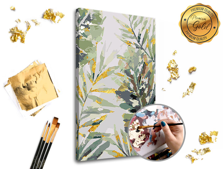 Predstavljamo vam glavni novitet Slikanje po brojevima Premium Gold. Na platnu ćete koristiti i metalne listiće čime će vaše djelo dobiti na ekskluzivnosti i trendi izgledu. Korištenje ljepila i listića je vrlo jednostavno i sigurno će ga savladati i početnici. Uzmi kist i počni sa slikanjem. Ljubav prema umjetnosti znači i da se unapređujete u njoj - to sada možete uz Premium Gold set.