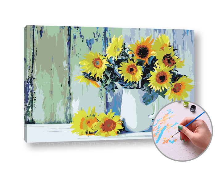 Slikanje po brojevima SUNCOKRET U VAZI - Level Medium 40x60 cm | bez okvira