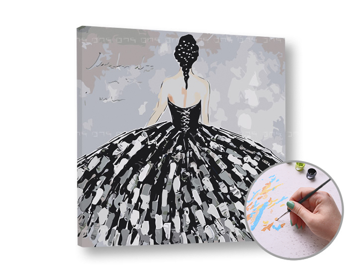 Introduction » Slikanje po brojevima » Slikanje po brojevima ŽENA U CRNOJ HALJINI - Level Medium 50x50 cm | bez okvira